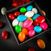 Kraukšķīgs vesels mandeļu rieksts, apvilkts ar maigu piena šokolādi un pārklāts ar košu, saldu cukura glazūru – īsts prieks gan acīm, gan garšas kārpiņām! Šīs krāsainās dražejas apvieno riekstu kraukšķīgumu, šokolādes samtaino maigumu un cukura glazūras saldeno noti, radot ideālu klasisku kombināciju.