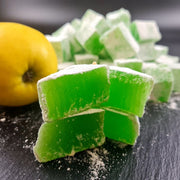 Saldums no ābolu sulas, apbērts ar pūdercukuru. Mīksta, ābolu garša. Vienkāršs, bet ļoti garšīgs lukums. Ideāls viegls saldums.