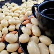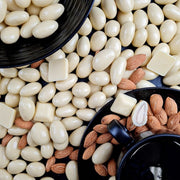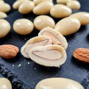 Dražejas ar mandelēm baltajā beļģu šokolādē
