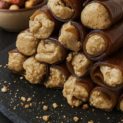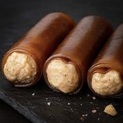 Šīs austrumnieciskās trubiņas ir īsts atklājums maiguma cienītājiem. Iekšā — samtaini salds riekstu krēms ar smalkām lazdu riekstu drumstalām, kas viegli kraukšķ mutē, nezaudējot krēma zīdainību. Krēms ir maigs, patīkams, atgādina vieglu riekstu nugu.