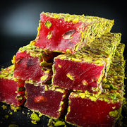 Granātābola lukums ar pistācijām, apbērts ar sasmalcinātām pistācijām