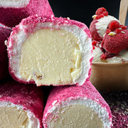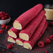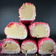 Pārsteidzoši garšīgs jauns produkts! Karaliskais lukums ar liofilizētu aveņu un cukura drupaču virskārtu, baltu šokolādi, kas pildīts ar lielām veselām mandelēm, un vaniļas zefīra kārtu. Ļoti maigs un salds! Un kāda krāsa – īsts kārums acīm. Lukums ir spilgti aveņu krāsas un rotās jebkuru galdu. Iekšā – lielas mandeļu pusītes un baltās šokolādes krēms! Mmmm!