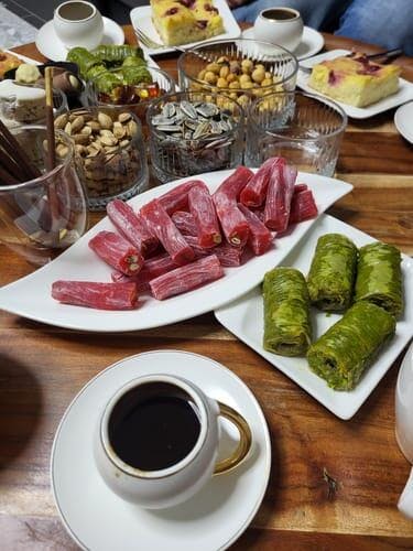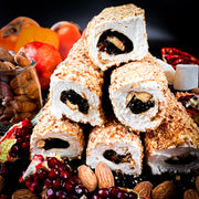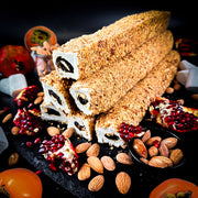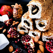 Super garšīgs jauns produkts! Šis turku gardums ir piepildīts ar gardu biezu hurmas marmelādi un sulīgu granātābolu sulu. Marmelādes garša ir skābena, tā atšķaida baltas pastilas slaņa saldumu (pastila garšo pēc klasiskā maršmelou). Kopā - ideāla saldskābā kombinācija. Iekšā ir uz pusēm grauzdētas mandeles. Lukums biezi pārkaisīts ar sasmalcinātām mandelēm. Rieksti ir viegli apcepti. Iesakām izmēģināt – jums noteikti patiks!
