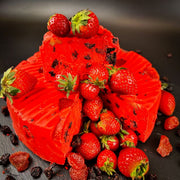 Ļoti skaists, košs, salds un gards deserts! Samarkandas halva ar zemeņu garšu ar zemeņu gabaliņiem. Halva ir salda, bet ne pārāk salda! Tai ir maiga, zemeņu krējuma garša. Atgādina bērnības mīļāko zemeņu džemu. Halvas pildījums sastāv no karaliskajām rozīnēm un kaltētu zemeņu gabaliņiem.
