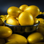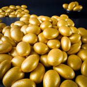 Svētku zelta dražejas ar mandelēm piena beļgu šokolādē
